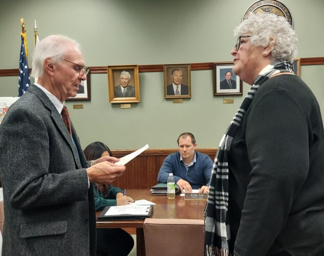Bashaw rose from the audience to take an oath of office at the December Pomfret Town Board meeting. She was appointed to fill out the term of Ann Eckman, who resigned in September.