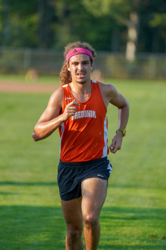 - Photo by Chad Ecklof Pictured above is Fredonia’s Diego Rey, who took first place in the boys’ cross country meet at Jamestown on Tuesday with a time of 18:27.