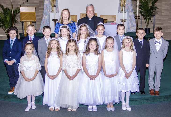 The Sacrament of First Holy Communion was celebrated by 16 children and their families at Holy Trinity Church in Dunkirk on Sunday, May 12 during the 11 a.m. Mass with Fr. Daniel Walsh, pastor and Fr. Raymond Donohue, concelebrant. Pictured above from left are: First Row: Sophia Bautista, ...