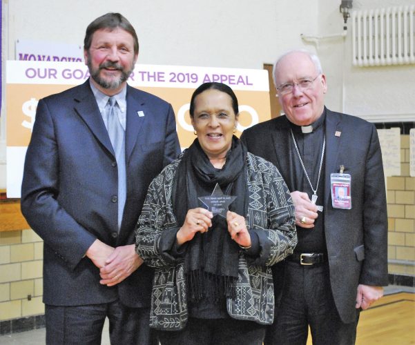 On Saturday, Bishop Richard Malone of the Diocese of Buffalo recognized the recipients of the St. Joseph the Worker awards, Joanne Goetz and Rita Moriarty.