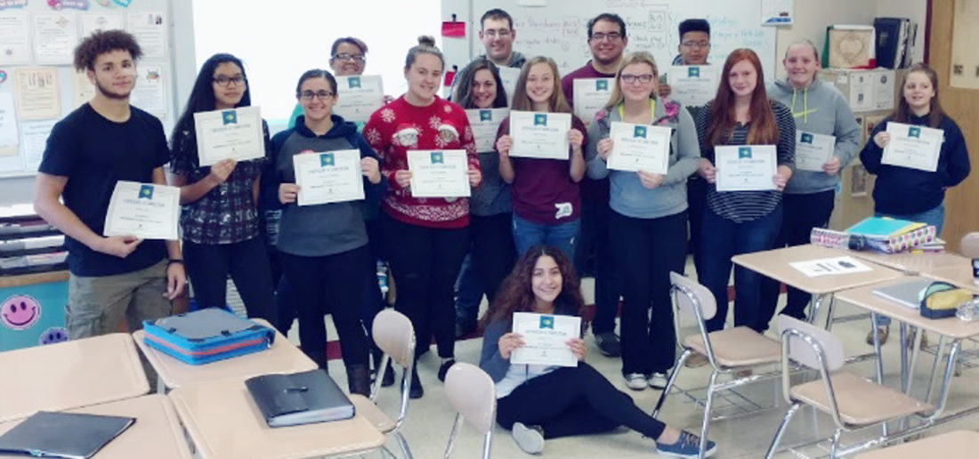 The H&R Block Budget Challenge is a free teen financial literacy program in the form of an online game that simulates real life as an adult: paying bills, managing expenses, saving money, investing in retirement, paying taxes, unexpected events and more. Participants play classroom against classroom and students against students in the learning-by-doing simulation. The program is available to 195,000 students for the 2016-17 school year. Dunkirk High School had 37 students playing in the competition. In this 10-week simulation, students from every state were competing against over 25,000 participants on 1,166 teams throughout the country. The students were having fun while developing positive financial habits for the future. Teacher Donna Pucciarelli had two teams competing in the Budget Challenge. They were the Period 2–Marauder Magic Team finishing 74th out of 1,166 teams. Magic Team’s top three finishers were: Jared DeJesus, Genielle Byczynski and Yeidy Santiago. The Period 9–Marauder Pride Team finished in 70th place. What’s even more impressive about the Marauder Pride Team is that Teyha Sharp finished in first place on the Pride Team with a national rank of 598 and Olivia Yerico-Piazza finished in second place on the Pride Team with a national rank of 669 overall, among the 25,000+ students in the simulation. Third place finisher on the Pride Team was Kayleigh Kujawa. Congratulations to the Magic Team and the Pride Team, and to Teyha and Olivia on an outstanding competition! Financial literacy certificates were given to all simulation participants. Pictured above is the Period 9 team; below is the Period 2 team.