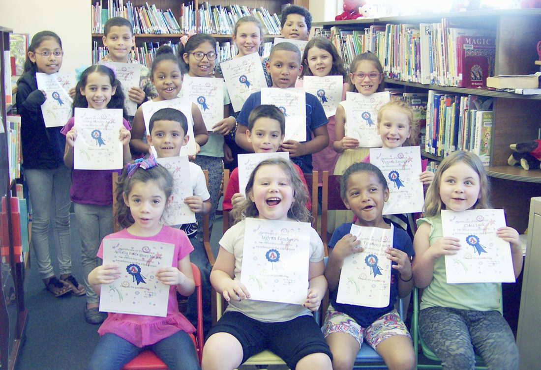 Recently at Dunkirk Elementary School 5, several students were honored as Students of the Month for April. David Boyda, elementary principal, presented awards to the following students. First row from left: Amalia Rodriguez Nunez, Jaylynn Fancher, Yolanee Finley and Clara Lack. Second row: Elijah Duprey, Alexis Gonzalez Borrero and Victoria Battaglia. Third row: Zoamy Mendez-Aquino, Armani Walker, Mansur Harvey, Madison Crowell and Victoria Cerrie. Fourth row: Anareidy Santos-Castro, Luis Rodriguez, Yaeli Santos Castro, Hayden Cerrie and Frank Wilson. Absent: Ayden Hamernick and Ben Amidon. Also, honored by the Board of Education was Clara Lack.