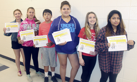 Submitted Photo Above: Silver Creek middle-schoolers Kassidy Herspold, Ryleigh Lawton, Jackson Williams, Sincere Becker, Alivia Penman, and Myah Como are Knights of the Month for March. Below: Silver Creek middle-schoolers Jessica Didas, Kylie Procknal, Shandon Monroy, Roger Williams, Lacee Watkins, and Jessica Pulver are Knights of the Month for April.