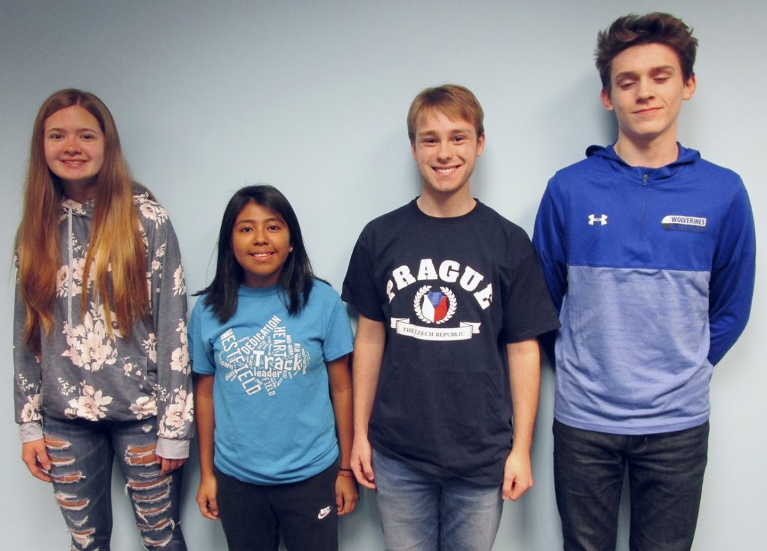 Pictured are the Westfield Academy and Central School High School Students of the Month for February. These students are selected by high school faculty and staff based on the following: 1. Follows Westfield’s Rules of Respect for staff and peers. 2. Shows outstanding effort and improvement or shows achievement and consistent high scores on tests, quizzes and projects commensurate with ability. 3. Prepared daily to participate in all classes. 4. Serves as a positive role model for peers. 5. Demonstrates a positive attitude and good citizenship. 6. Involved in school and community activities. From left are Senior of the Month Alexandria Kassman, 11th grade Student of the Month Jessica Lopez-Hernandez, 10th grade Student of the Month Bradley Belmondo and 9th grade Student of the Month Logan Miles.
