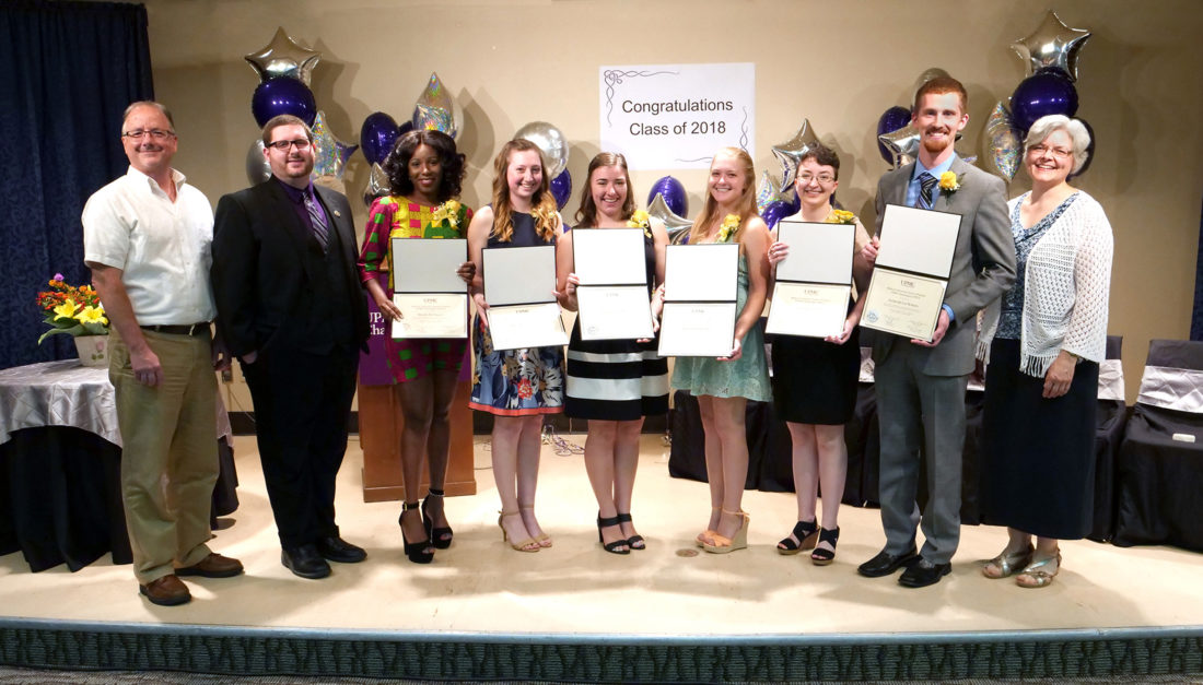 Submitted Photo Pictured left to right: Steve Kilburn, chair, UPMC Chautauqua board of directors, Kyle C. Jordan, coordinator, Medical Laboratory Science Program, Class of 2018 graduates, Maame-Esi Aggrey, Abbey Basford, Stephanie Bress, Emily Dillenburg, Amanda Ledgerwood, Zacheriah Roberts, Michele G. Harms, program director.