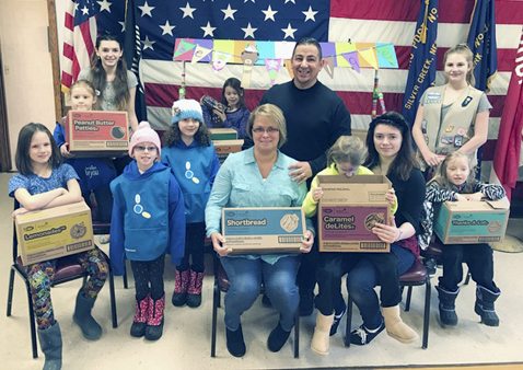 Submitted Photo In celebration of March for Meals 2017, members of Girl Scout Troop 20098 of Silver Creek delivered over 60 boxes of cookies to Meals on Wheels clients throughout the greater Silver Creek area. The cookies were purchased for distribution by Jim White’s Truck and Auto Center.