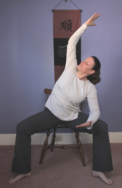 This is an opportunity for those who have trouble getting down to and up from the floor to learn to do real yoga while sitting on a chair. The chair is also beneficial to use when practicing balancing poses.
