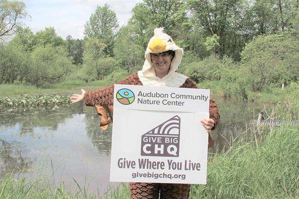 Submitted Photo Attired in a Bald Eagle costume, Audubon Community Nature Center Executive Director Leigh Rovegno invites you to contribute to Audubon during Give Big CHQ’s June 1-11 online fundraising event. Your support is especially needed at this time.