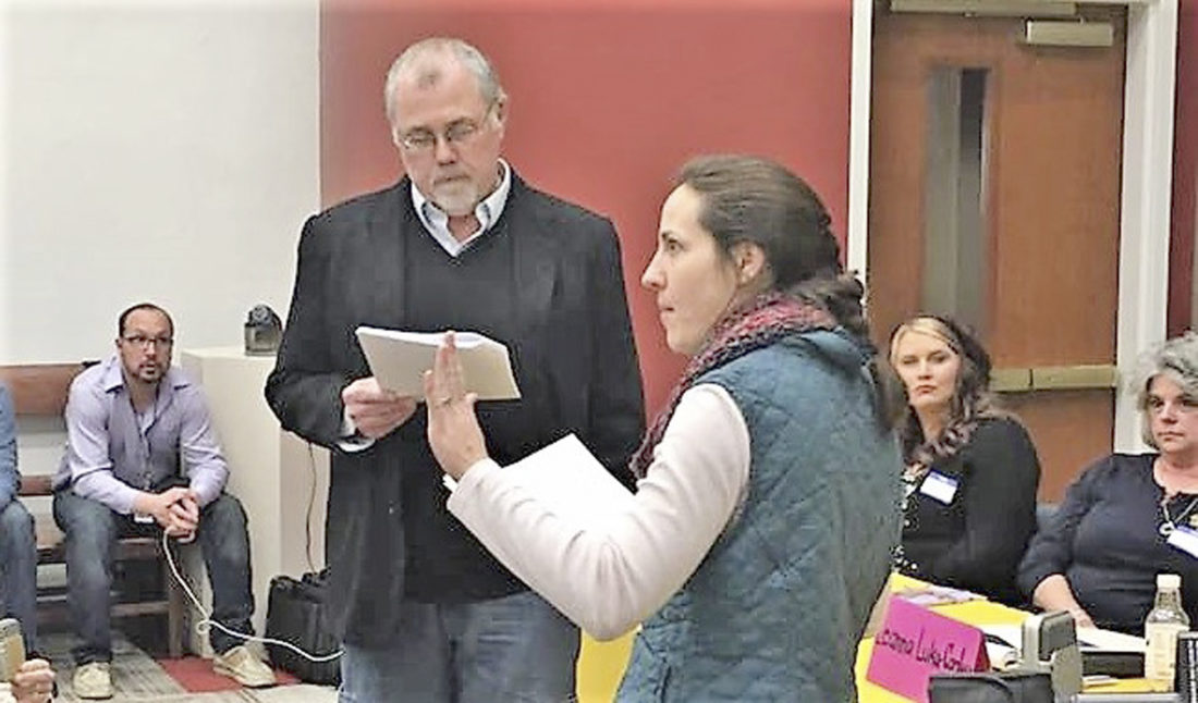 Submitted Photo Matthew Smith and Willow Fodor participate in a public reading of a scene from 'Least Resistance' at the James Prendergast Library