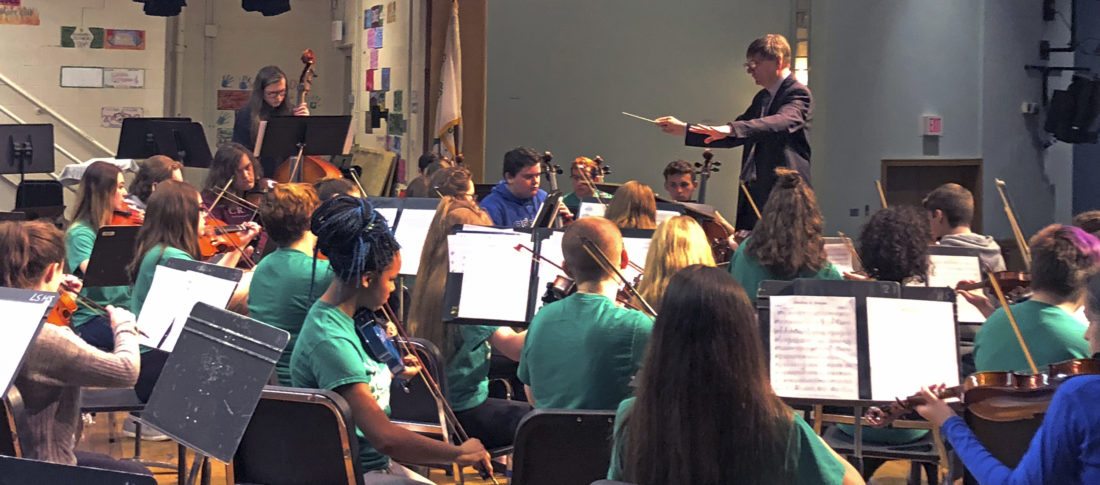 ANGOLA — Recently, Dr. Thomas Witakowski, a SUNY College at Buffalo State professor, joined the Lake Shore Symphonic orchestra as a guest conductor to help students prepare for NYSSMA pieces at their upcoming performance in April.