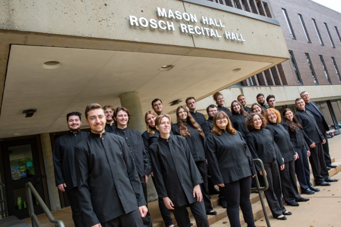 The ensembles include the Chamber Choir, directed by Associate Professor Vernon Huff; College Choir, directed by Assistant Professor Adam Luebke, and Camerata, directed by Lecturer Brent Weber.