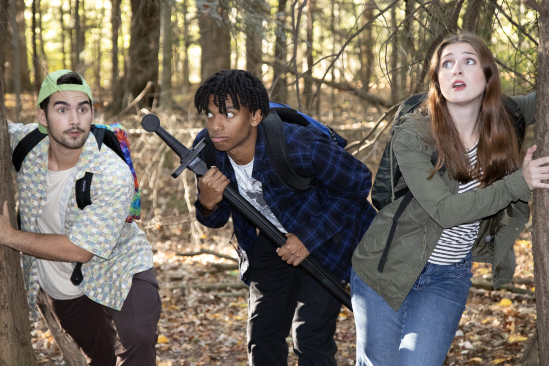 Preparing to take on the monsters in “The Lighting Thief: The Percy Jackson Musical” are, from left, Grover (Fisher Sullivan), Percy Jackson (Jalen Dalton) and Annabeth (Olivia Frizzi). The Walter Gloor Mainstage Series production by the Department of Theatre and Dance opens Thursday for six performances at the State University of New York at Fredonia.