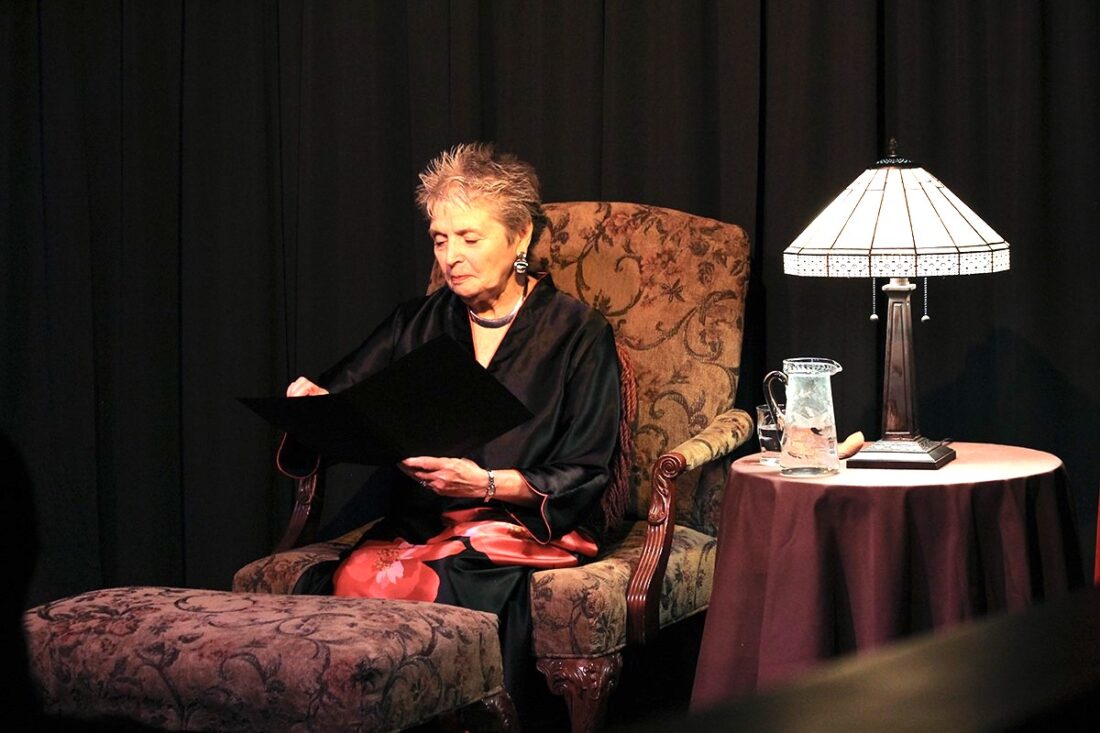Joan Caruso portrays a character in a readers theater.