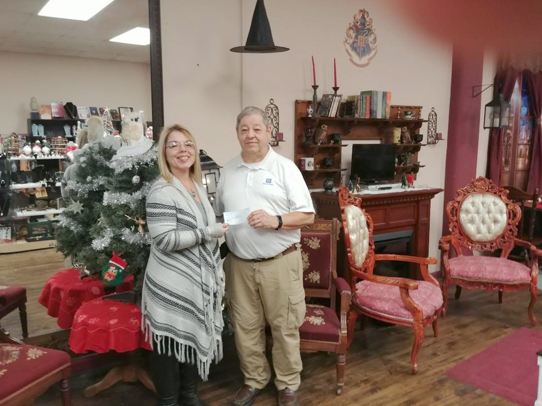 The Kiwanis Club of Westfield-Ripley through its fund-raising efforts were able to donate funds to the Lady of the Lake Christmas for Children Project. Project Coordinator Patty Valentine is pictured here with Bob Ducato, Kiwanis Club president receiving the check. For information about the Kiwanis Club ask any Westfield-Ripley Kiwanian or call 753-6098.