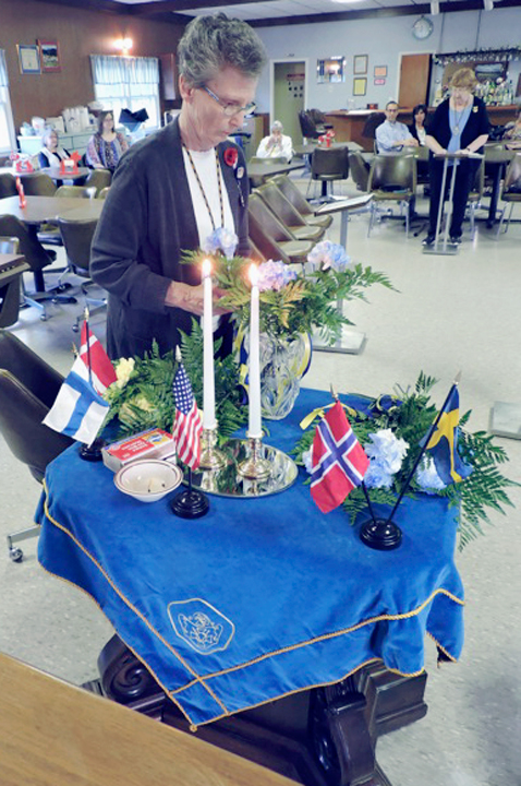 Submitted Photo The Thule Lodge held its Memorial Service to remember those members and associates who have died in the last year. Vice Chairman Susan Washington Sipos, in the background, read the list of names, and Chaplain Diane K. Shaw placed a carnation on the altar in memory.