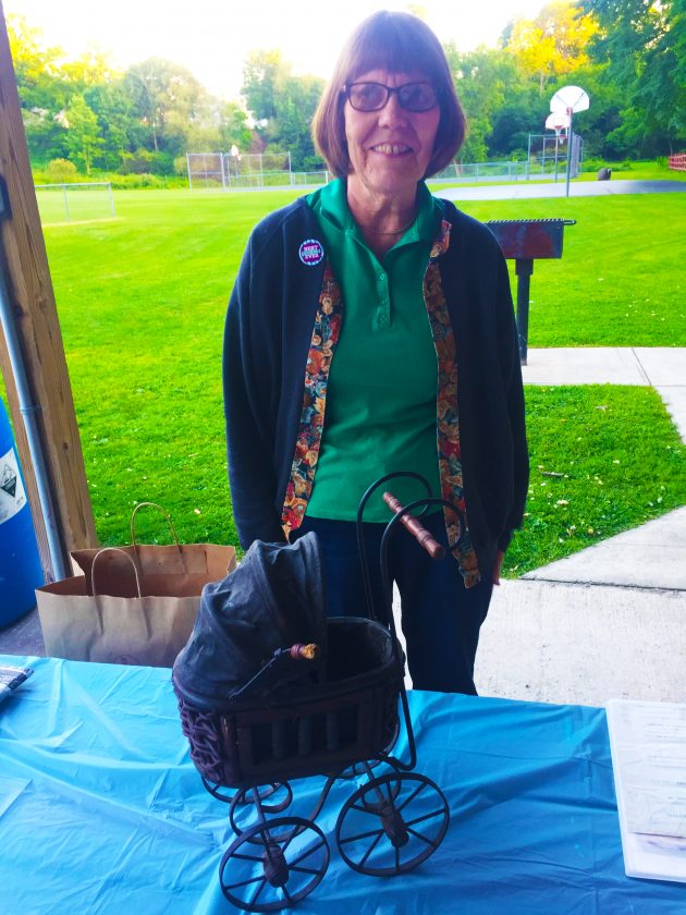 Kay Richardson displays a small doll buggy during the recent Valley Historical Society’s Treasure Trove program.