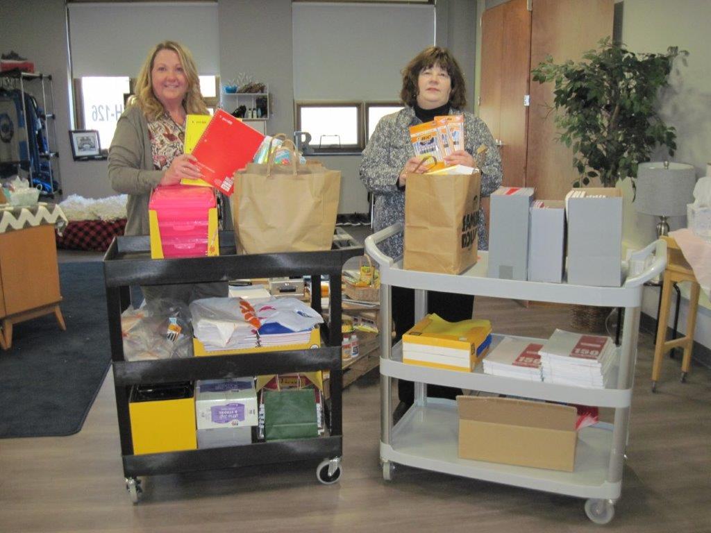 Gowanda Central School District recently accepted a generous donation of school supplies from Gowanda American Legion Auxiliary Unit 409 to benefit its student body. Sue Wesley and Jill Fedor from the Auxiliary collected and delivered the supplies to campus. They will be split between the district’s three schools. Pictured: Janene Draegert of Gowanda High’s Counseling Department and Fedor.