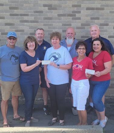 The Dunkirk Exempts Fireman’s Association and The Sons of the American Legion Post 62 recently held Party in the U.S.A. benefit. The proceeds were donated to Blue Star Mothers Lake Erie and the Lakeshore Humane Society. The event featured live music by the Bleeding Hearts Band, a dunk tank, and a 50-50 drawing. Pictured are Rock Vallone, Linda Smagner, Sue Styborski, representing Lakeshore Humane Society; and Susan Rowley and Kathy Collver of Blue Star Mothers. In back are Patrick Ambrose of Post 62, David Swift of the Exempts and Dean Wright Post 62
