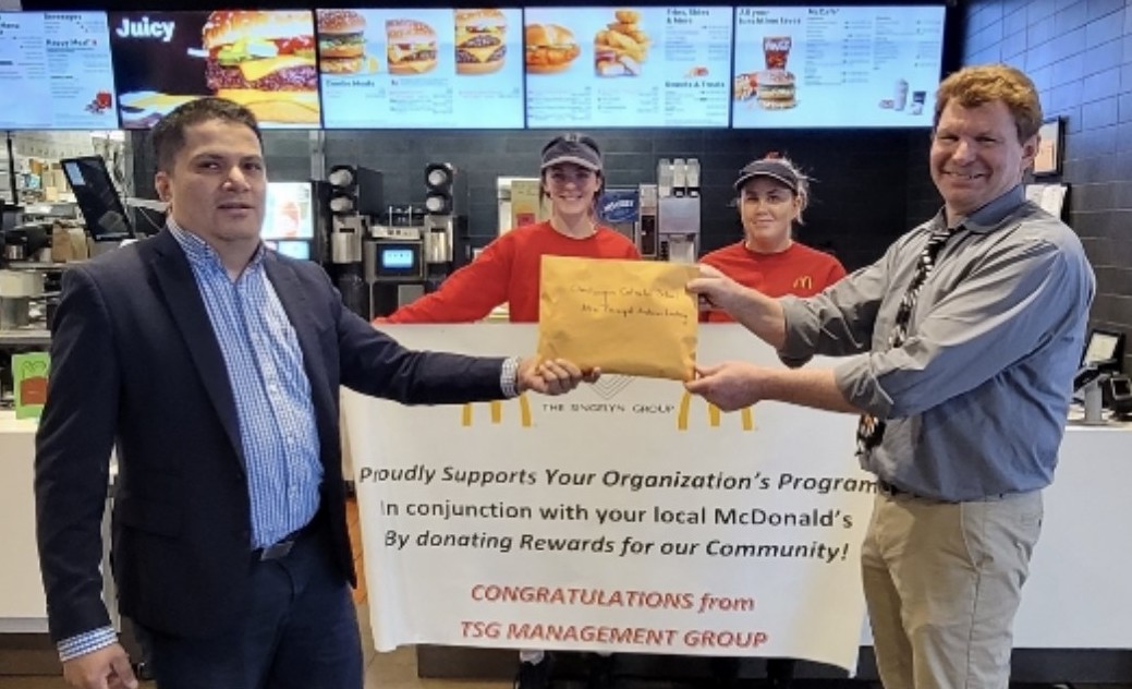 Fredonia’s McDonald’s restauraunt recently donated coupons for free fries, cones and sundaes to Northern Chautauqua Catholic School. The coupons were used as foul shot prizes during NCCS’ annual Noto-Smith Basketball tournament. Free french fry coupons are also being used as rewards in a positive behavior incentive program at the school. NCCS students made thank you cards to show McDonald’s their Mighty Monarch Gratitude. Pictured above, NCCS Principal and COO Andy Ludwig, right, accepts the generous donation from Singelyn Group District Manager Justin Suarez.