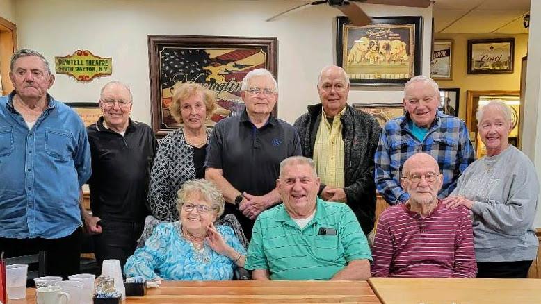 Recently the Pine Valley Central School Class of 1959 held a mini-reunion for class members Sally and Dallas Clark from Maricopa, Arz. at Zollinger’s Restaurant, South Dayton. The class enjoyed lunch and reminiscing. The blessing was given by James Everetts. The annual class reunion will be held at Zollinger’s Restaurant, Monday, Aug. 7 at noon. Class members, from left, include: Patricia Mierzwa Kaus, Jerry Ellis, Dallas Clark, and Sally Harvey Clark. Second row: Louie “Butch” Zollinger, Richard Mansfield, Karen Warner Strickland, James Everetts, Dean Morey, and Donald Ivett.