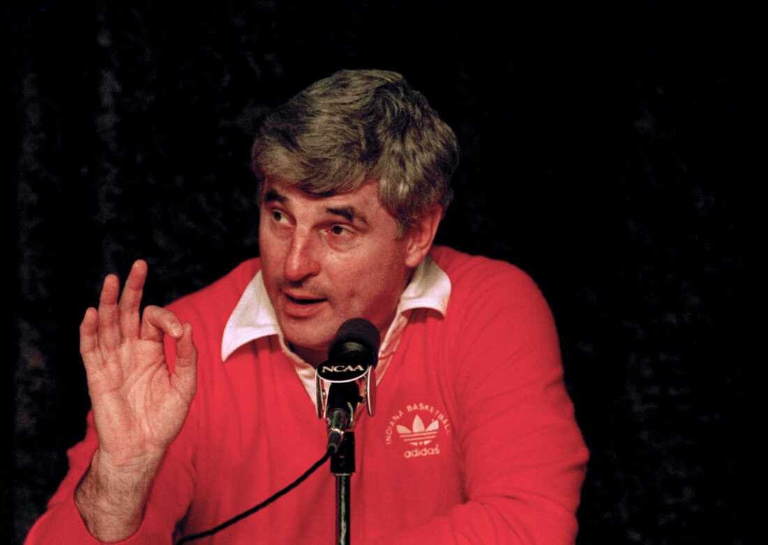 - Indiana coach Bobby Knight gives the okay sign at a news conference following his team’s victory over Syracuse for the NCAA Championship in New Orleans, La., Mar. 30, 1987. (AP Photo/Bob Jordan)