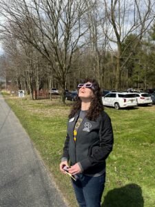 Kim Turner looks at the eclipse in wonder. Photo by Sarah Hatfield.