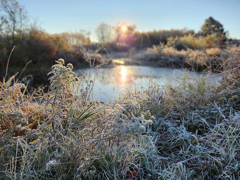 - Frost over a pond in the morning.