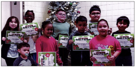 Recently students at Dunkirk Primary School 5 were chosen as Students of the Month for December. They were presented with certificates for their accomplishments. Aiden Montalvo Hernandez, Grade 1, was chosen as Overall Student of the Month for December and was honored at a recent Board of Education meeting. From left are: Luna Millan, Neo Cruz, Naomi Davis, Jonielys Jimenez Vargas, Grayson Schulenberg, Jhensiel Gonzalez Corraliza, Aiden Montalvo Hernandez, Johannaliz Mendez and Evon Martinez.