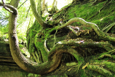 Living in a small area where the earth meets the atmosphere, moss is found growing in what we call the boundary layer. Utilizing condensation on stone and the stagnant airflow near the earth’s surface, moss is seen thriving in its own microenvironment within the forest. This boundary layer acts as mosses’ own greenhouse by trapping heat and moisture due to the lack of air flow close to the earth’s surface. Mosses persist using these simple structures that have carried them through multiple megaannum.