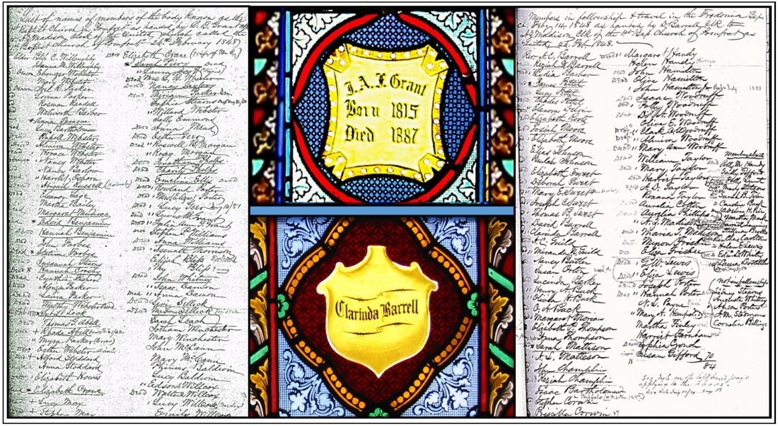 Like their predecessors in Part 1 of this series, Julia Ann Forbes Grant (1816-1875) and Clarinda Yale Barrell (1803-1881) are honored to this day in the exquisite stained-glass of the historic building which formerly housed the Fredonia Baptist Church.