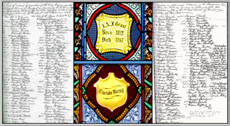 Julia’s and Clarinda’s windows were each donated by their husbands, the merchant Lewis Beach “L.B.” Grant (1809-1884) and the merchant David Barrell (1803-1888). The memorials were two of four announced on 6 July 1881 in the Fredonia Censor newspaper.