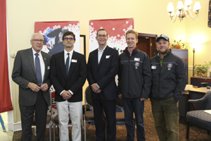 Submitted Photo Craig Randall, Mayor of Lake Placid; Tait Wardlaw, Empire State Winter Games Director; Mark Tryniski, CEO of Community Bank, N.A.; Gordy Sheer, past Olympic luge participant and ESWG alum; and Andrew Weibrecht, past Olympic alpine skier and ESWG alum pose for a photo at a press event at the CBNA branch in Canton on Oct. 26.