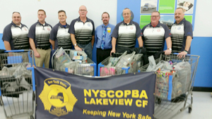 Submitted Photo On Dec. 2 some of the officers from Lakeview Shock did some shopping at Wal-Mart in Fredonia for Women and Children’s Hospital. During the summer the officers raised over $2,500 to spend on the gifts. After the shopping was complete, six of the officers drove the toys and gifts up to Buffalo and presented them to some of the children. The rest went to storage for future use. The officers would like to thank all that helped and donated for this, including Wal-Mart. Pictured above from left to right are Neal Gruber, Chris Mann, Joe Harris, Bill Makuch, Wal-Mart Store manager Brad Balentine, Kevin Larson, Kris Lovern and Jeff Marsowicz.