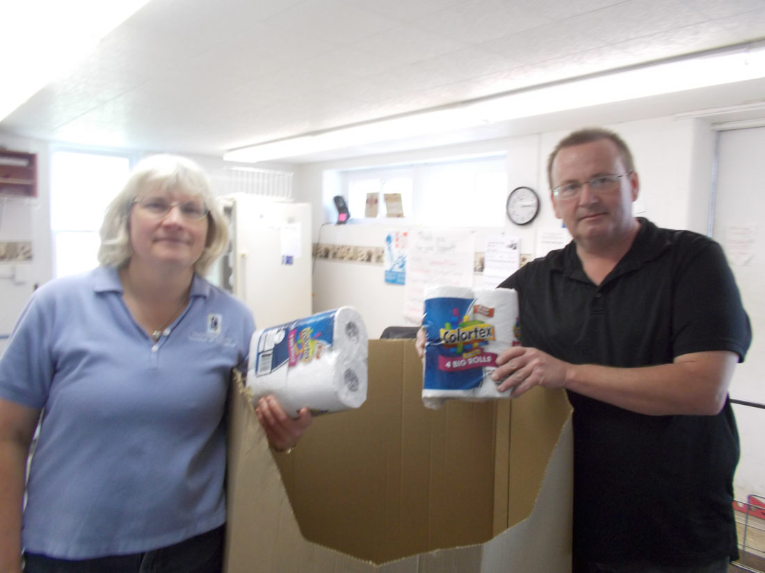 Submitted Photo Dollar General in Mayville held non-perishable food drives and paper product drives benefiting the Mayville Food Pantry during the month of May. Thanks to the generosity of Dollar General and their customers, seven large boxes of canned goods as well as three very large boxes and one smaller box of paper products were donated to the Mayville Food Pantry for the benefit of those in need. The Mayville Food Pantry serves the Chautauqua Lake Central School District and is open Monday, Wednesday and Friday from 10:30 a.m. to 12:30 p.m. Gary Smith of Dollar General presented some of the donated paper products to Food Pantry Coordinator Deborah Marsala at the Pantry location. The Food Pantry is located at St. Paul’s Episcopal Church, 99 S. Erie St., Mayville.