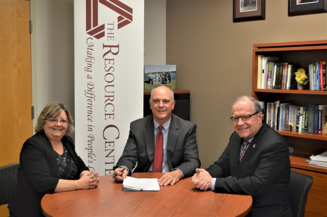 Submitted Photo Denise Jones, The Resource Center president and chief executive officer; Randy Ordines, TRC Foundation, Inc. chair; and Randy Sweeney, Chautauqua Region Community Foundation executive director, complete the necessary paperwork to transfer TRC Foundation’s $2.2 million in assets to the Community Foundation.