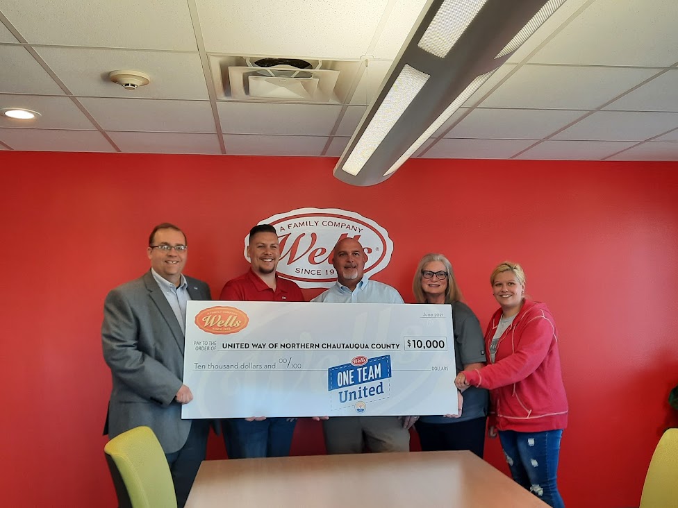 Wells Enterprises has made a generous gift in support of the efforts of the United Way of Northern Chautauqua County. The $10,000 gift will be utilized in the local community caring fund and be invested into community partner and United Way programming that will help focus on improving the health, education, and financial stability for thousands of residents throughout the Region.