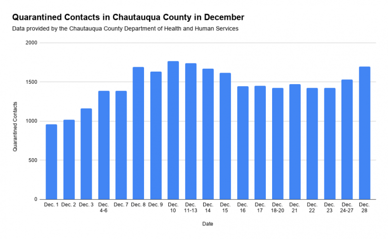 There are now over 600 active cases of COVID-19 after the Chautauqua County Health Department announced, via its dashboard, that 418 new cases of the coronavirus were reported from Dec. 31 to Jan. 2.