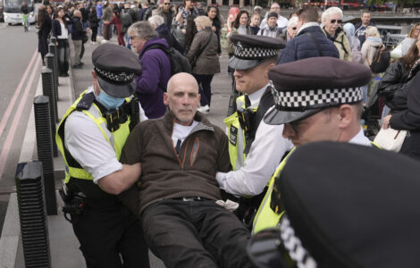 LONDON (AP) — British police will get stronger powers to restrict repeated protests, the government said Sunday, after almost 500 people were arrested at a demonstration in support of a banned pro-Palestinian group.