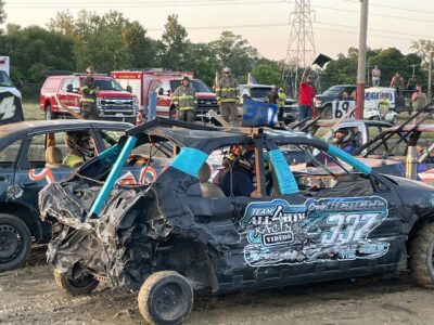 Pictured are scenes from Friday night’s derby at the Chautauqua County Fair in Dunkirk. The derby will again run on Sunday at 4 p.m.