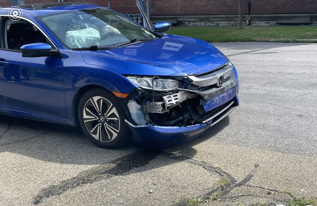 Dunkirk police and fire crews were at the scene of a two-car accident at Second Street and Central Avenue around 2 p.m. According to witnesses the crash occurred after one vehicle went through a red light at the intersection. Pictured above is the vehicle that was struck by the other motorist.