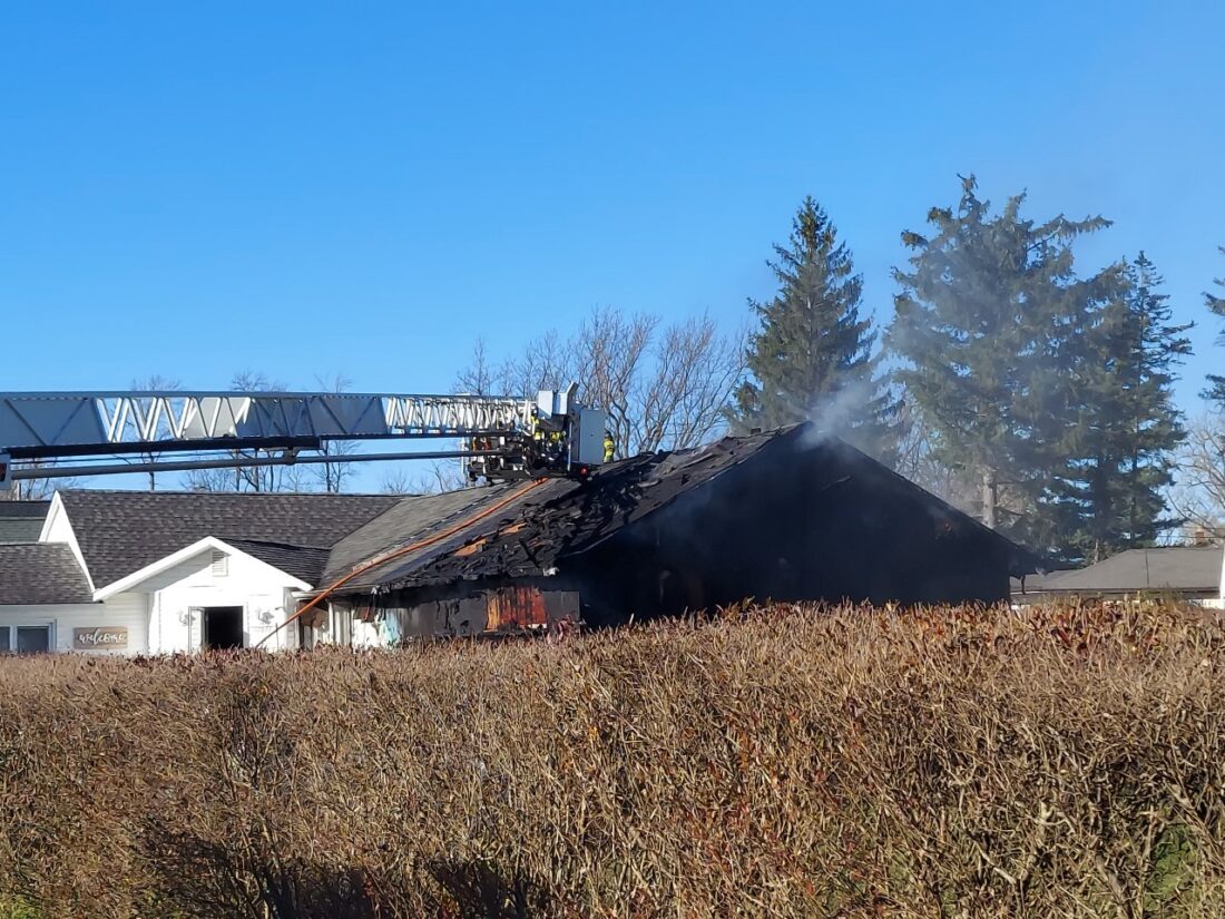 Reported around 1:20 p.m., the fire cast a pall of smoke over Lake Erie — visible from Eagle Bay on Route 5, about six miles to the west.