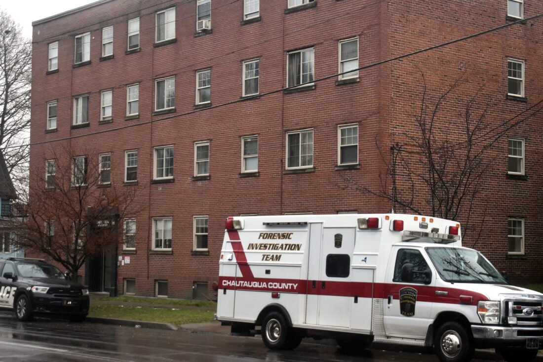 Two hours after the Buffalo man’s body had been discovered inside the apartment complex, several Jamestown police vehicles could be seen outside the Park View Apartments. A truck with the county’s Forensic Investigation Team showed up as well.