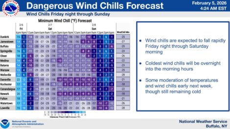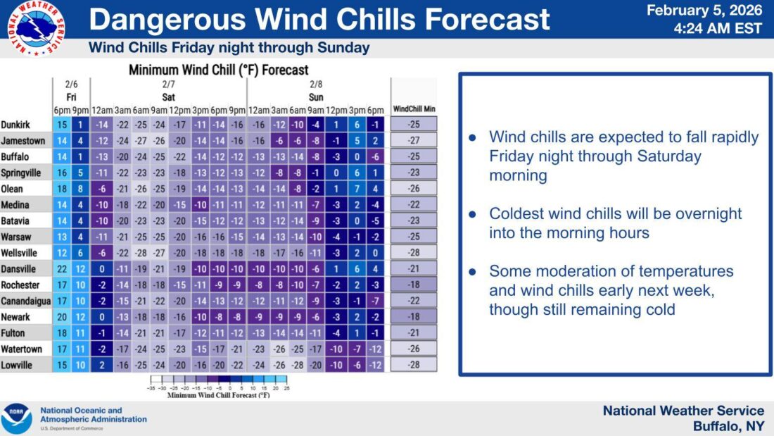 Forecasters say dangerously cold wind chills, as low as 25 below zero are possible. The coldest wind chills are expected to be late Friday night through Saturday.