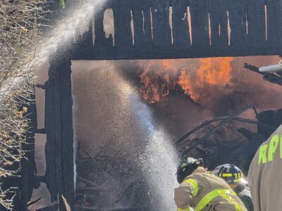 Crews battle Westfield garage fire