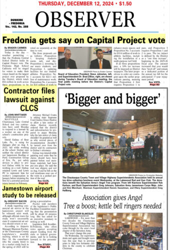 Due to current weather conditions and the forecast for the remainder of the day, the Fredonia Central School District is closed on Thursday, Dec. 12. All after-school and evening events are postponed, including the District’s Capital Project vote. The vote is postponed until Friday, Dec. 13 ...