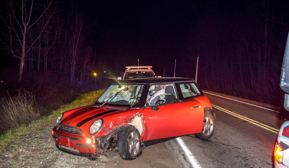 OBSERVER Photos by Dan Kohler: A driver found to have a blood alcohol content four times over the legal limit caused an accident on Ellery Centralia Road in the town of Ellery Wednesday night. The Chautauqua County Sheriff’s Office was called to a two-car accident around 9 p.m. Deputies’ investigation revealed Randall H. Samuelson, 64, of Bemus Point, veered into oncoming traffic, striking the other vehicle. He was allegedly found to be intoxicated and was taken into custody, where his BAC was found to be .36. No injuries from the accident were reported. He was charged with aggravated driving while intoxicated, DWI, consumption of alcohol in a motor vehicle, failure to keep right and refusal to take a roadside breath test. He will appear in Ellery Town Court at a later date.