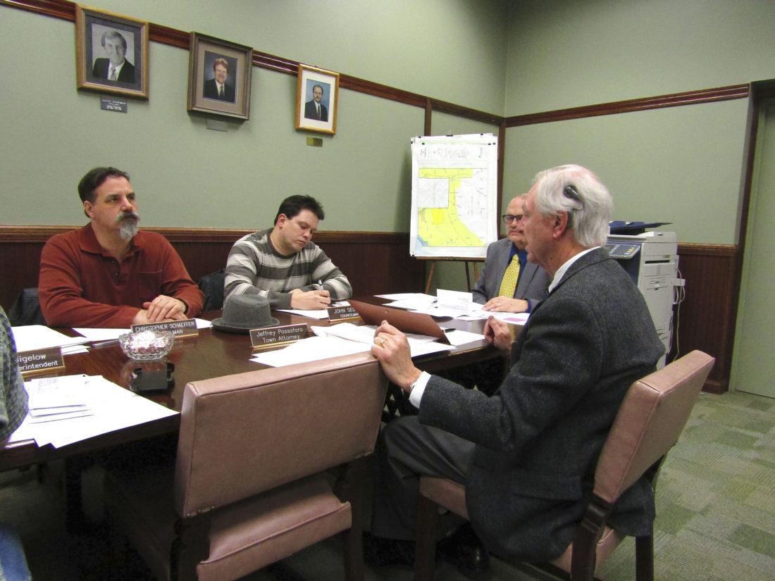 OBSERVER Photo by Greg Fox The Pomfret Town Board discusses a highway vehicle purchase during a recent meeting. Pictured, from left: Councilmen Christopher Schaeffer and John Sedota, Supervisor Donald Steger (back) and Town Attorney Jeffrey Passafaro.