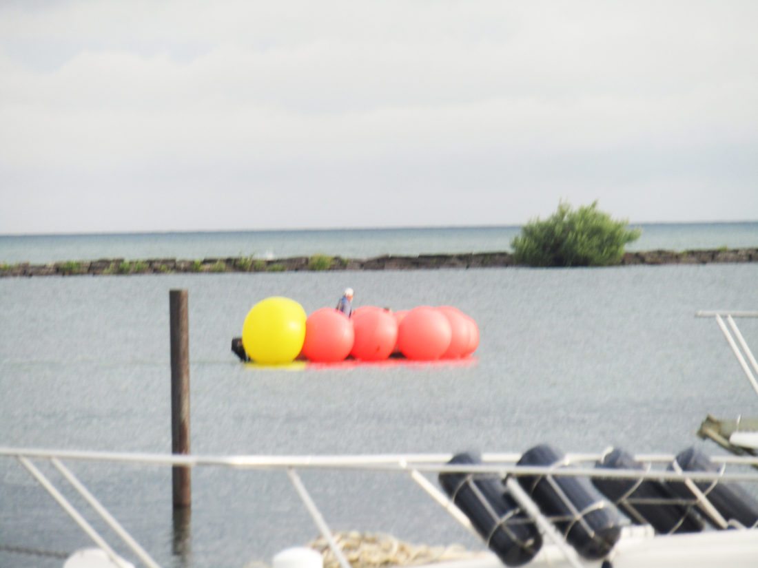OBSERVER Photo by Gene Pauszek Birthday ballons? These were the marker buoys for the Air Show being towed into position by a boat.