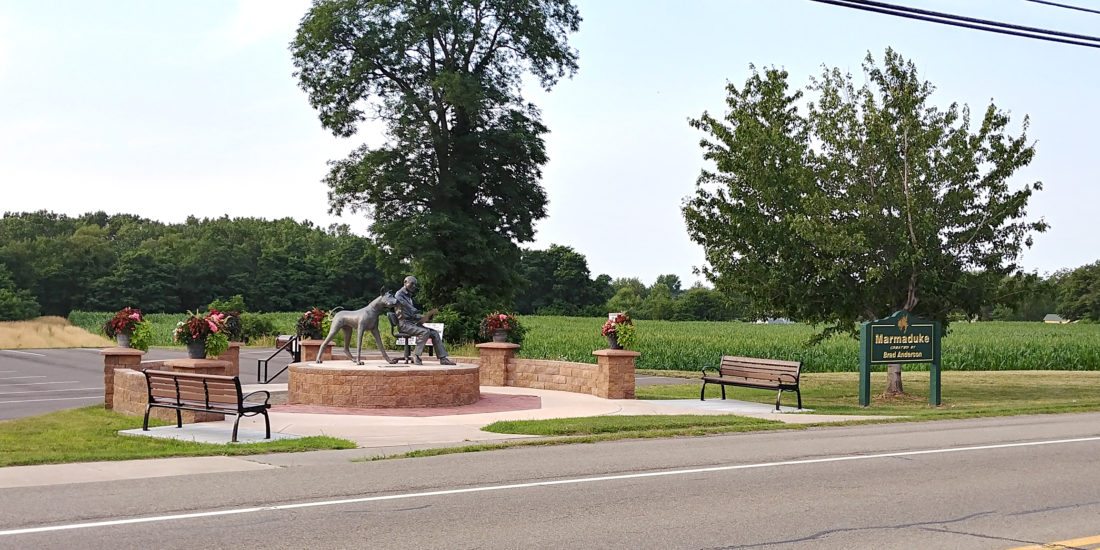 BROCTON — Reunion weekend proved to be a good opportunity for visiting Brocton Central alumni to get a glimpse of the latest addition to the town of Portland and village of Brocton: the Brad Anderson and Marmaduke statue.