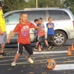 - Caden Fote takes his turn during the soccer cone drill competition during Tuesday’s Festival of Grapes pentathlon.